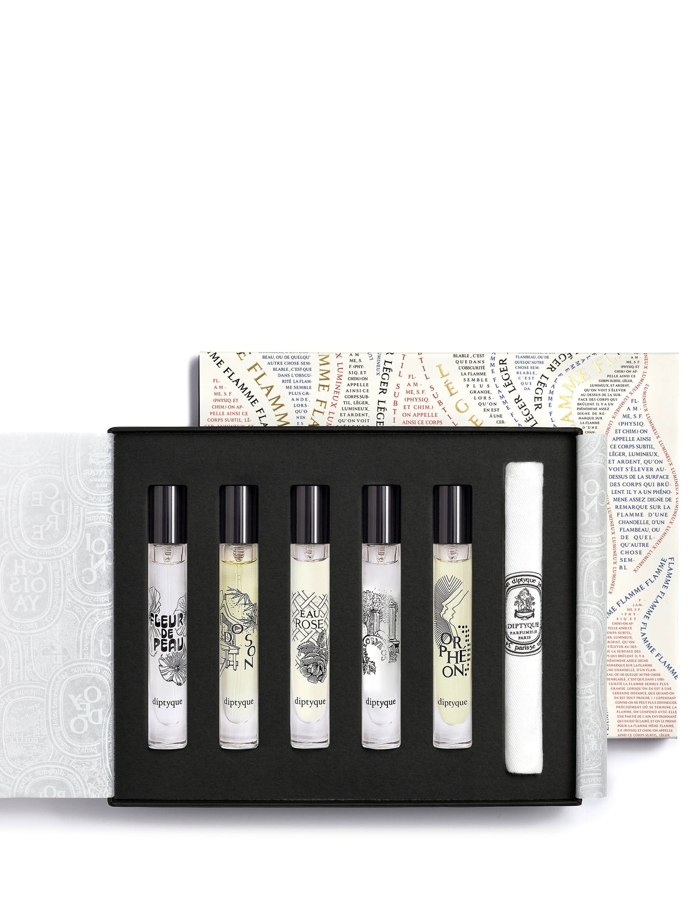 Explorez Diptyque Paris à travers 5 eaux de parfum emblématiques de la marque en petit format : Fleur de Peau, Do Son, Philosykos, Orphéon, Eau Rose. Un coffret en édition limitée d’une beauté unique.